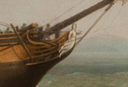 Detail of George Raper’s painting of HMS Sirius, showing the figurehead, prob.1788 [1]
